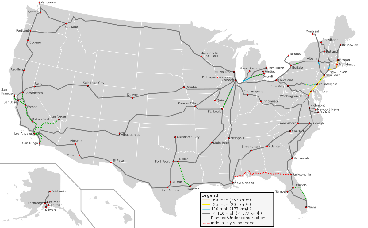Much less web-like, for sure. I can probably count on two hands the amount of demand for a 1,000 mile rail trip from Omaha to Salt Lake City that cannot be served better by existing options. I simply cannot see how many of these proposed routes — especially in the middle of the country — can sustain the minimum economics needed to justify the tens of billions per year necessary upkeep and operating costs let alone the hundreds of billions of dollars needed to build those lines in the first place.