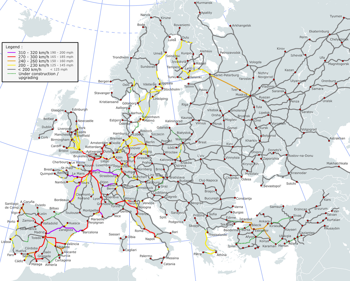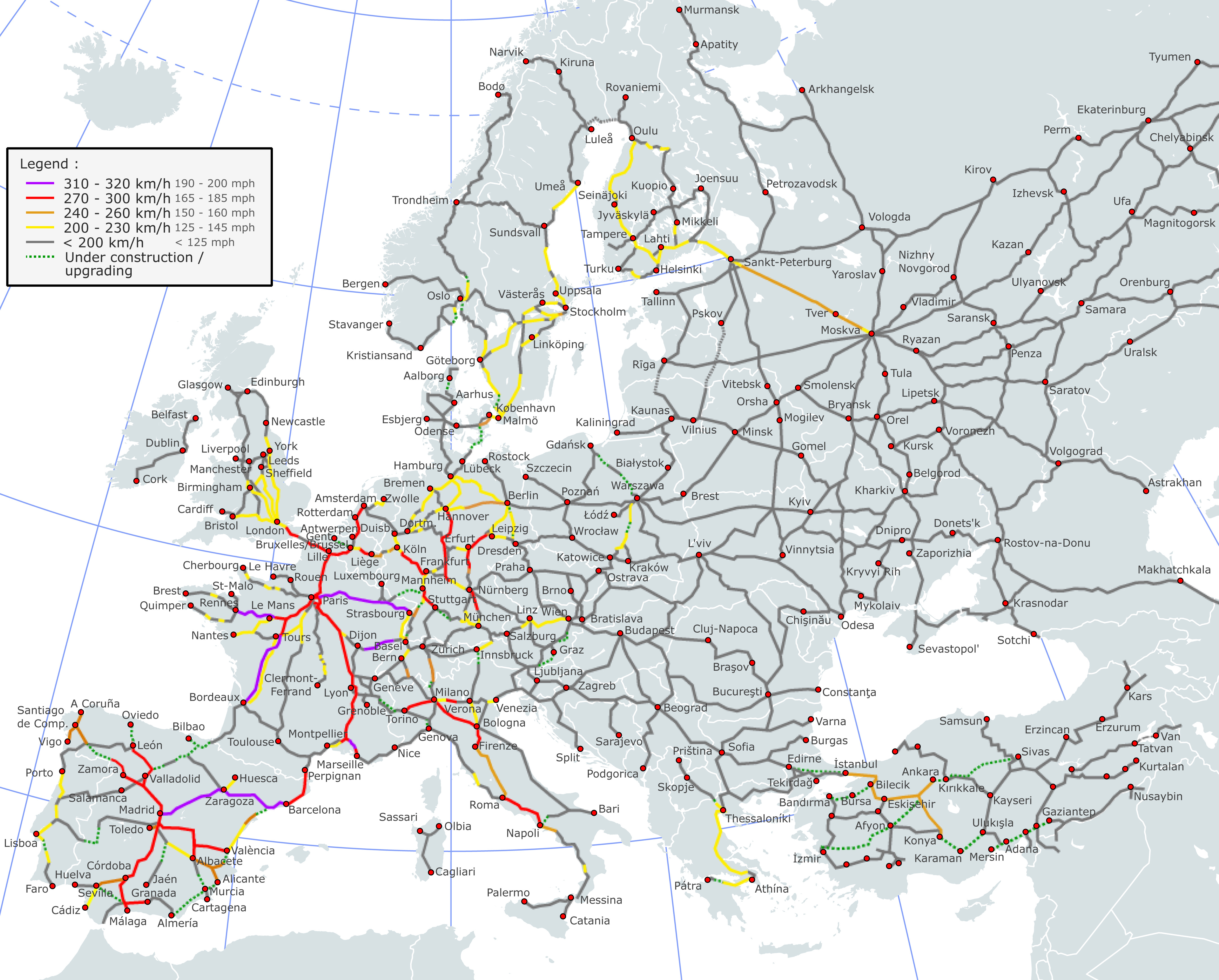 My conclusions on the prevalence of high-speed rail systems in Europe and East Asia, and the lack of such systems in the United States today are largely based on this set of data.